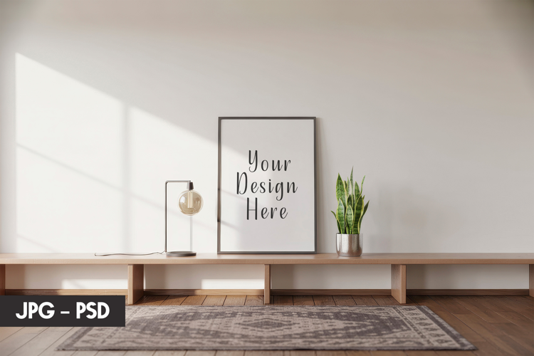 Framed Art Mockup Frame Mockup Psd Vertical Artwork Psd Plant Decor Frame Greenery Home Corner Natural Interior Styling Warm Light Scene Modern Decor Wall Aesthetic Plant Room Cozy Home Display