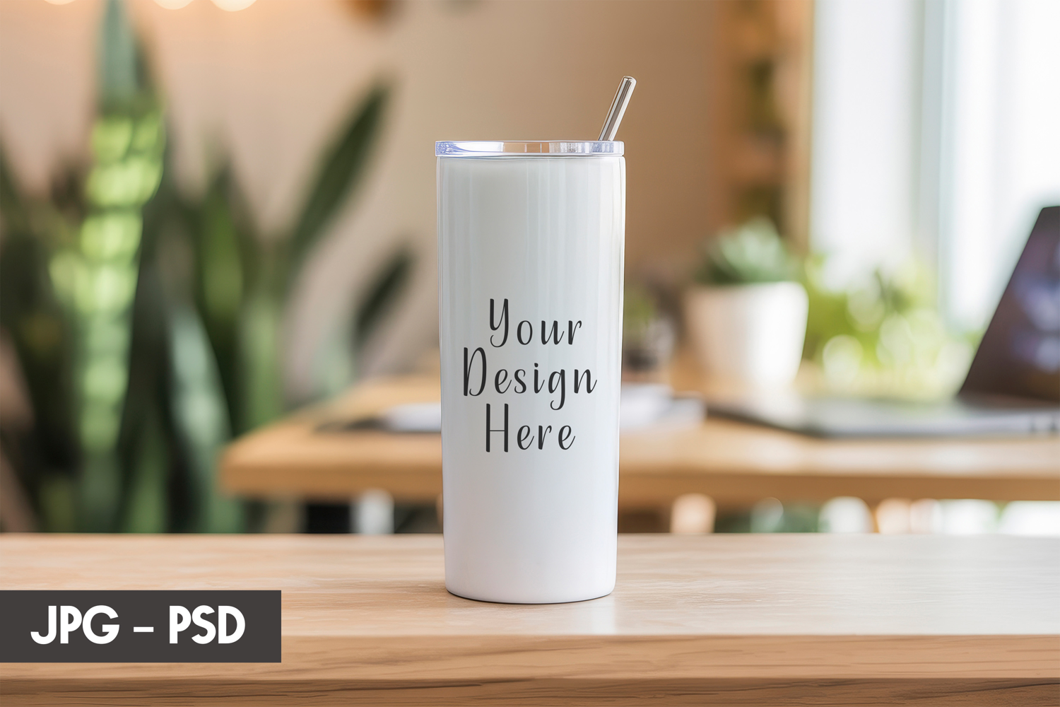 Tall Cup Mockup Tumbler Mockup Psd Lifestyle Office Setup Stainless Tumbler Display Clean Desk Scene Modern Drinkware Styling Photorealistic Tumbler Psd Sleek Insulated Tumbler Workspace Drink Scene Professional Desk Vibe