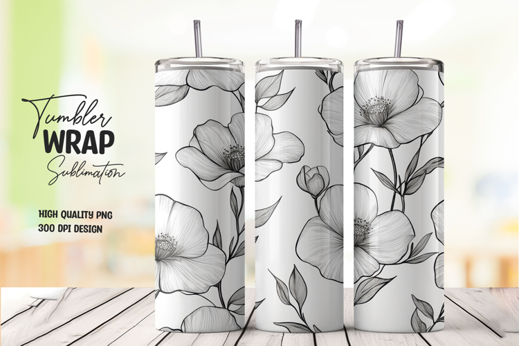 Seamless Pattern Sublimation Png File Black White Floral 20oz Tumbler Line Art Flowers Sketch Floral Tumbler Wrap Botanical Wrap Minimal Floral