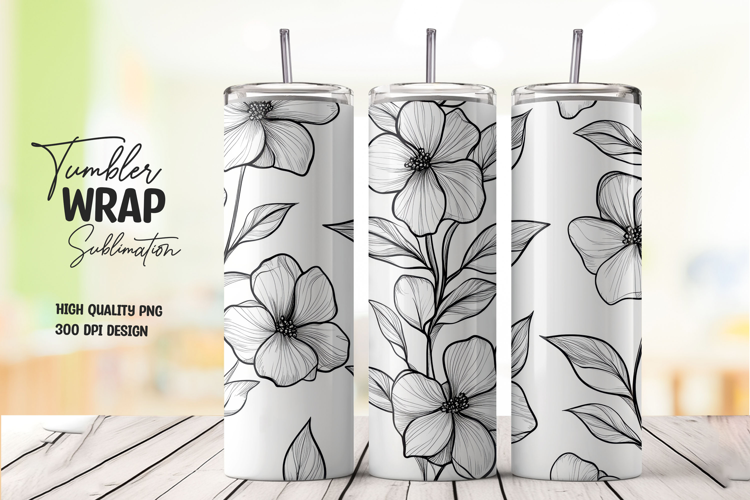 Sublimation Png File White Floral Elegant Design 20oz Tumbler Minimal Flowers Line Art Floral Tumbler Wrap Seamless Wrap Botanical Wrap