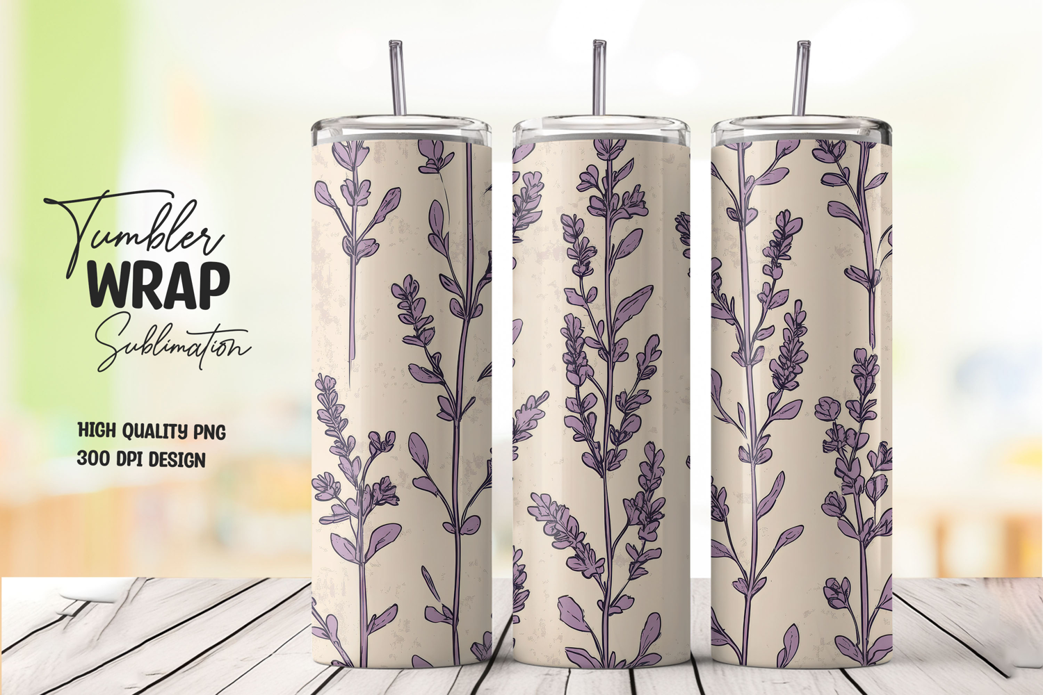 Sublimation Png File Lavender Floral 20oz Tumbler Tumbler Wrap Seamless Wrap Lavender Stems Botanical Wrap Herb Pattern Cream Floral