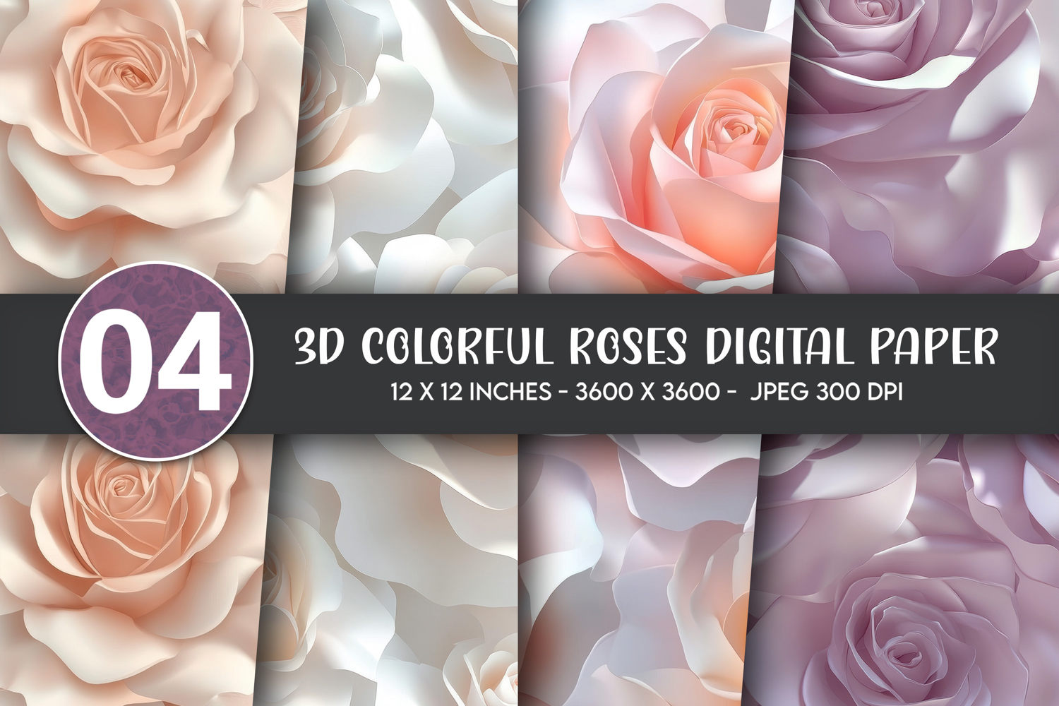 3d colorful roses digital paper