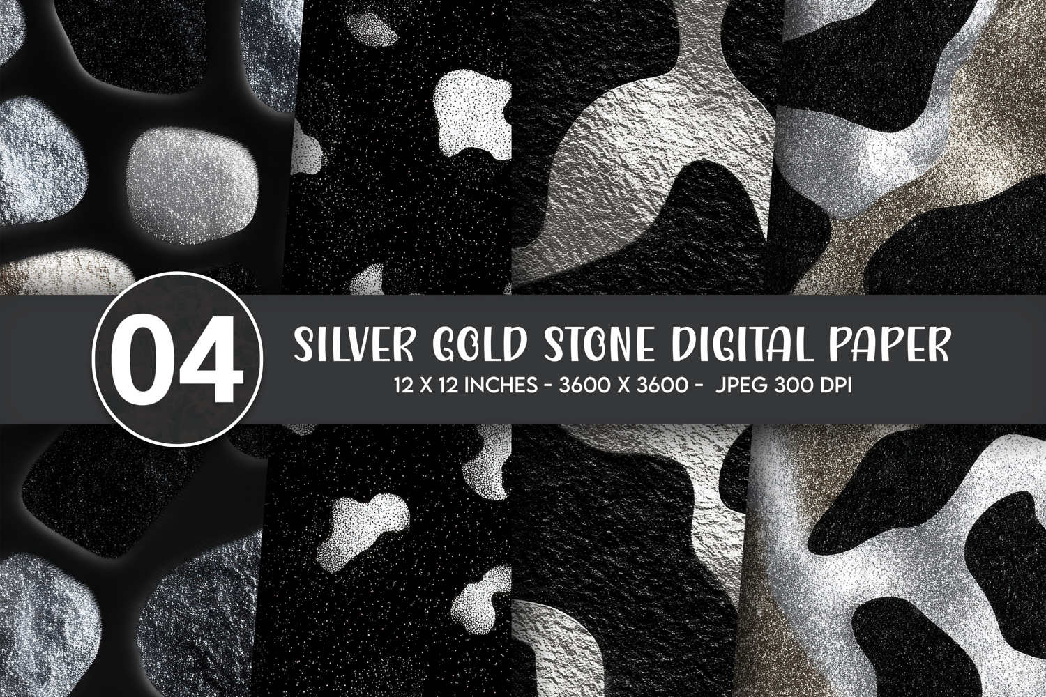 Digital Paper Scrapbook Paper Stone Texture Seamless Texture Luxury Pattern Liquid Metal Gold Silver Metallic Stone Abstract Rock Glam Stone