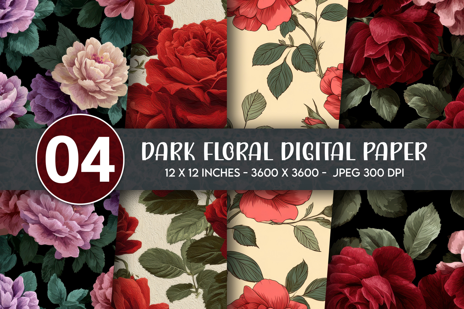 Dark Floral Digital Paper