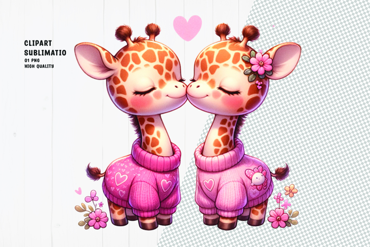 Animal Love Illustration Cute Safari Animals 300 Dpi Sublimation Valentine Animal Clipart Giraffe Couple Clipart Romantic Giraffe Design Kawaii Giraffe Art Kissing Giraffes Png Pink Sweater Giraffes Adorable Giraffe Pair