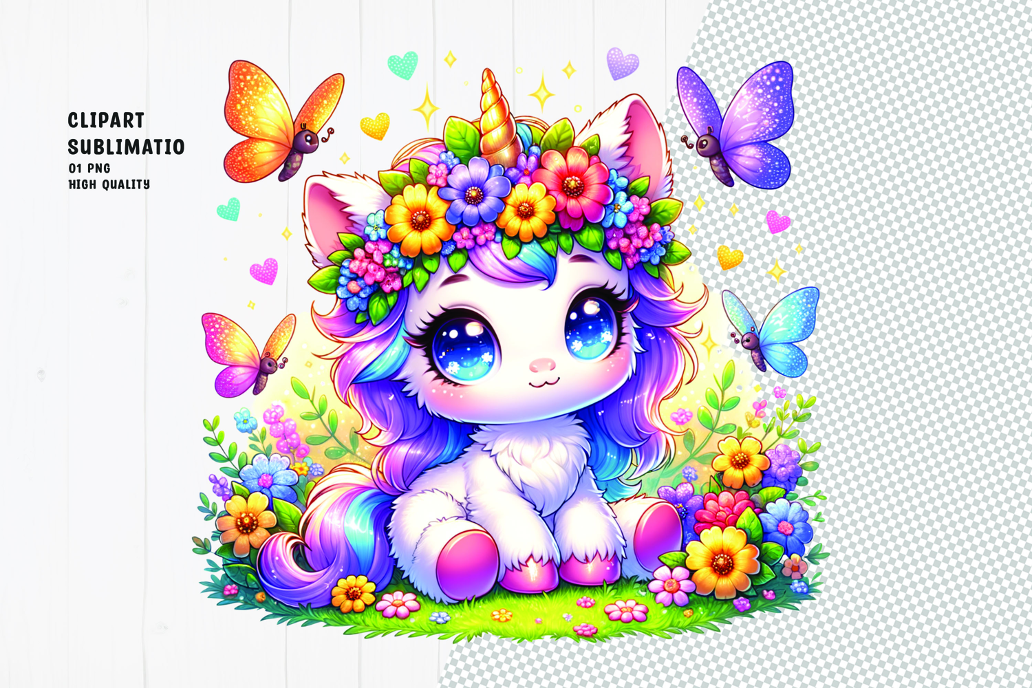 Flower Crown Cat Butterfly Garden Clipart Kawaii Kitty Png Kawaii Kids Art Cute Unicorn Cat Clipart Rainbow Unicorn Animal Sublimation Design Cute Pastel Floral Animal Fantasy Cat Artwork Adorable Unicorn Pet
