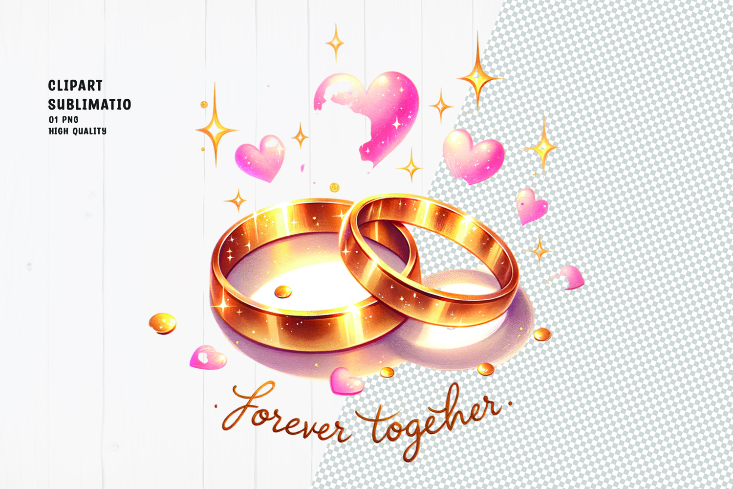 Forever Together Wedding Rings Illustration – Clipart Sublimation PNG