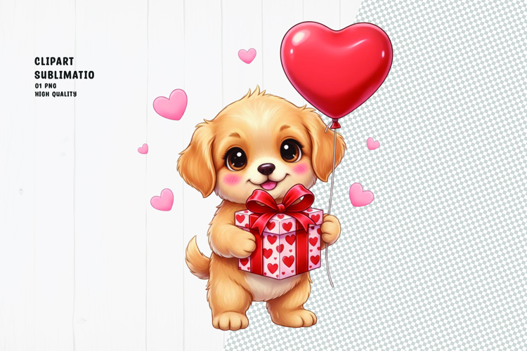 Romantic Clipart Valentine Gift Valentines Day Art Cute Dog Puppy Clipart Cartoon Dog Love Illustration Sublimation Design Heart Balloon Kawaii Puppy