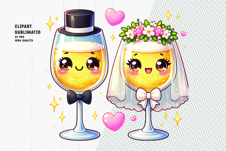 Wedding Toast Bride And Groom Clipart Glitter Glasses Wedding Champagne Valentine Drink Anniversary Art Romantic Celebration Kawaii Couple Art Cute Glass Characters Bubbly Illustration