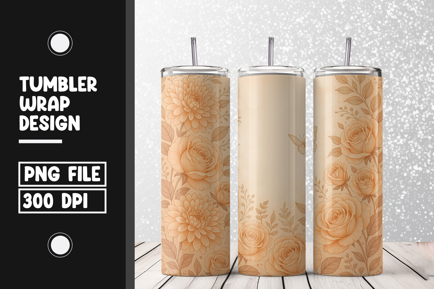 Beige Rose Floral Tumbler Wrap PNG