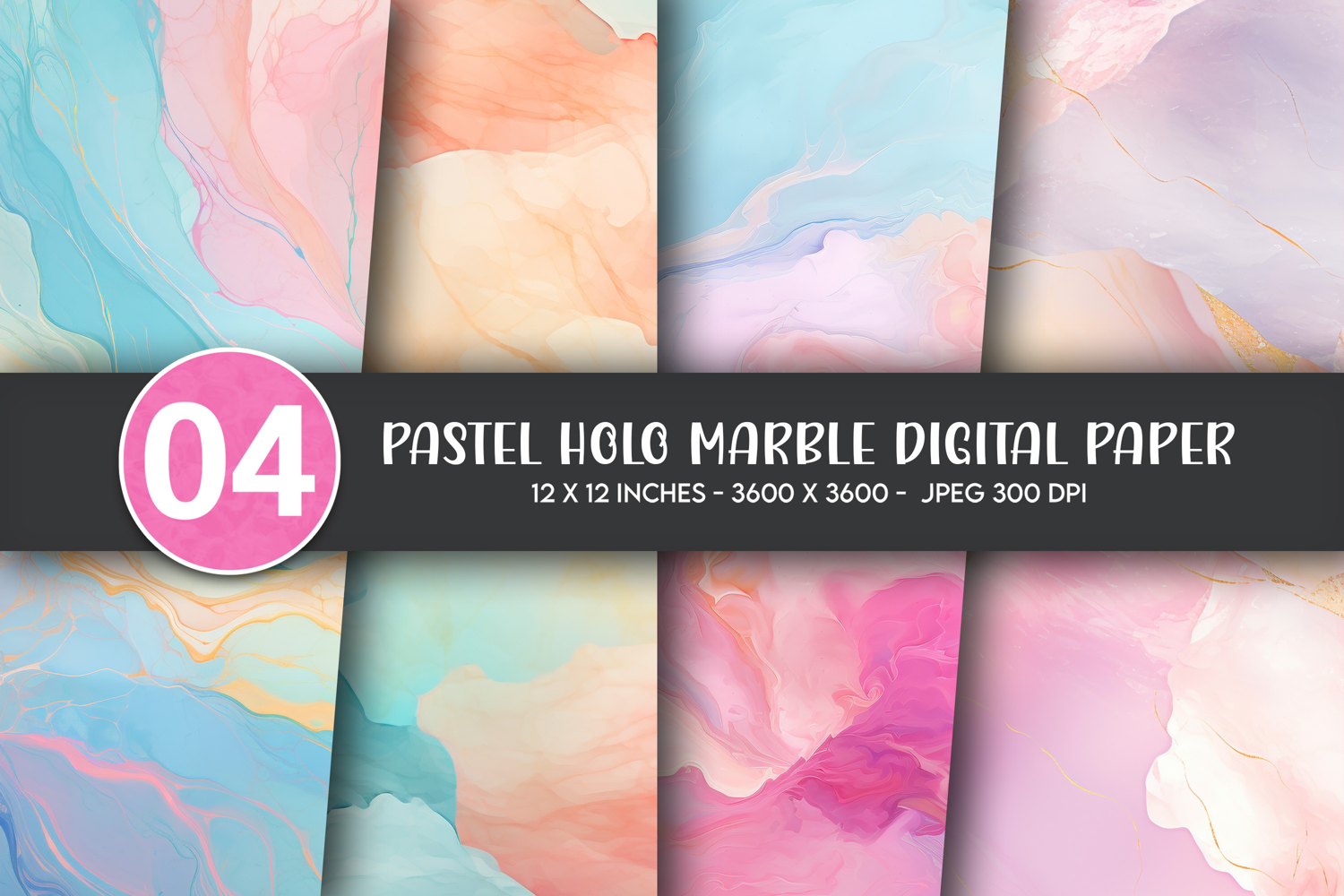 Pastel Holo Marble Digital Paper