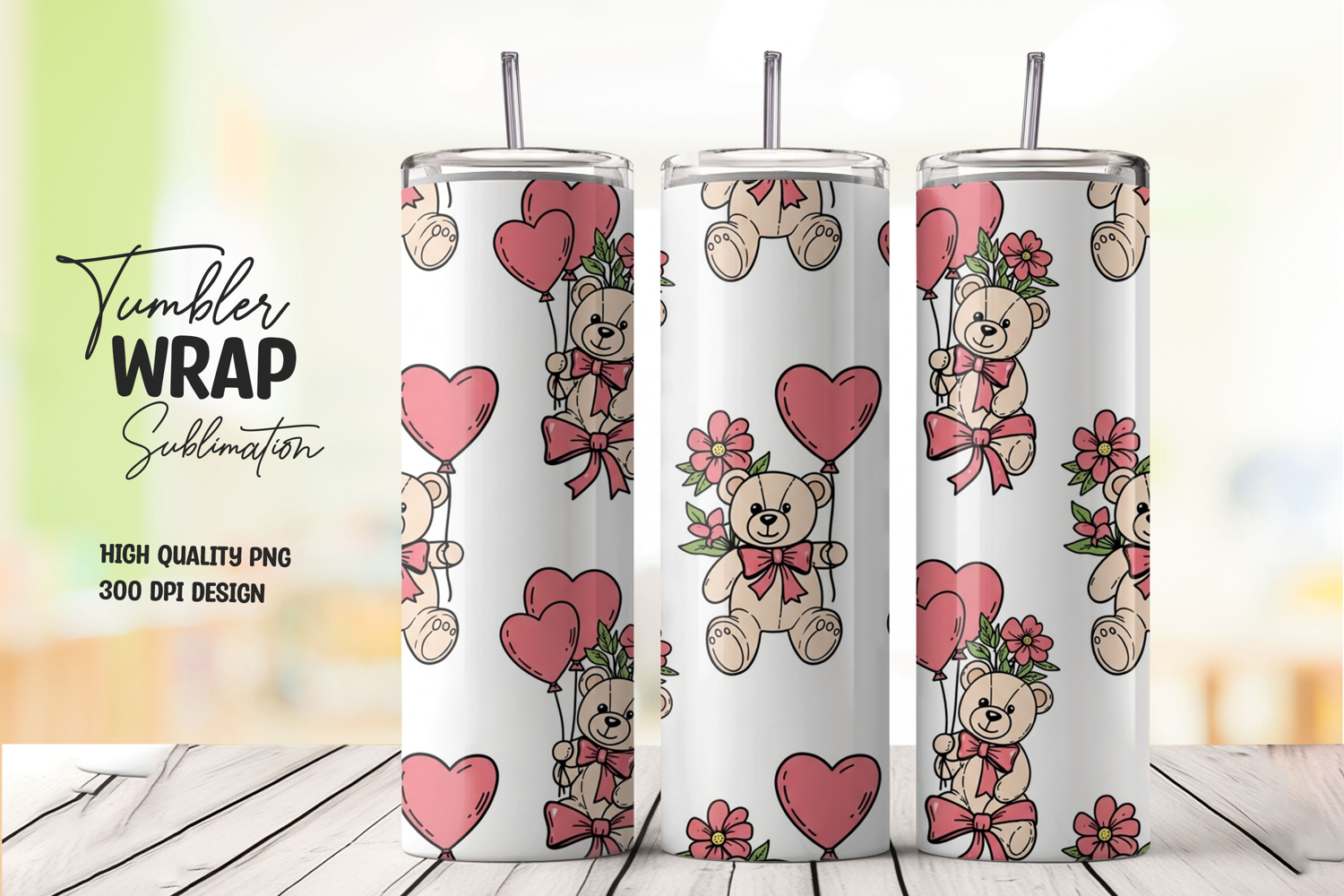 Cute Teddy Bear Tumbler Wrap – Sweet Valentine Love Design