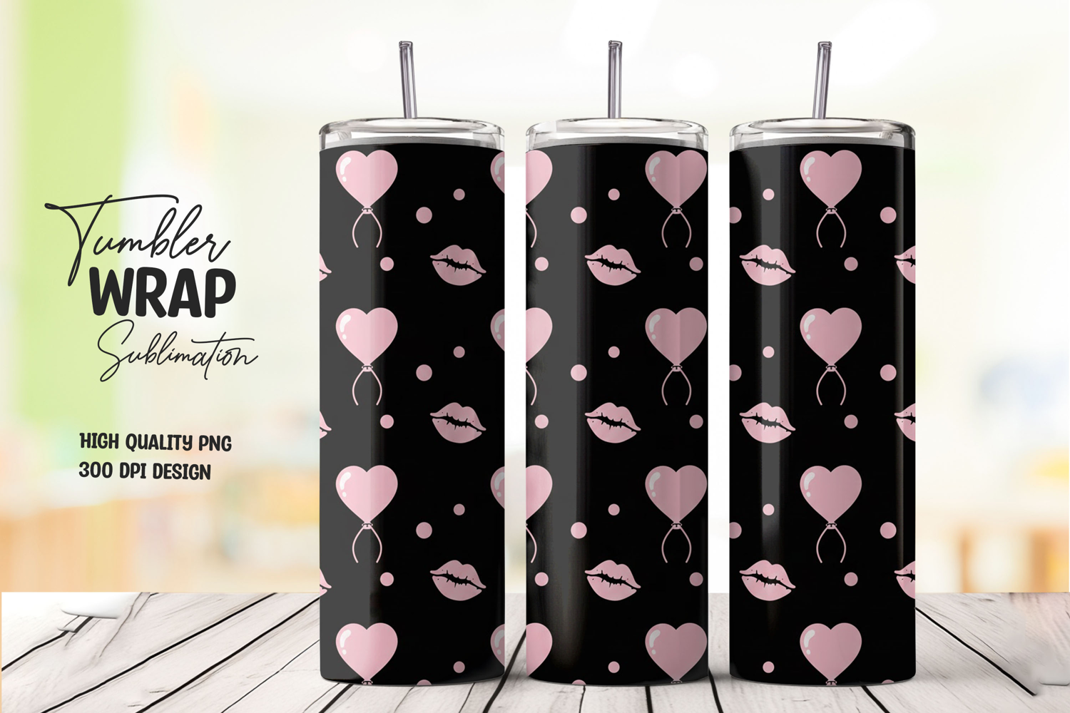 Similar Design Products to Soft Pink Hearts and Lips Valentine Tumbler Wrap PNG