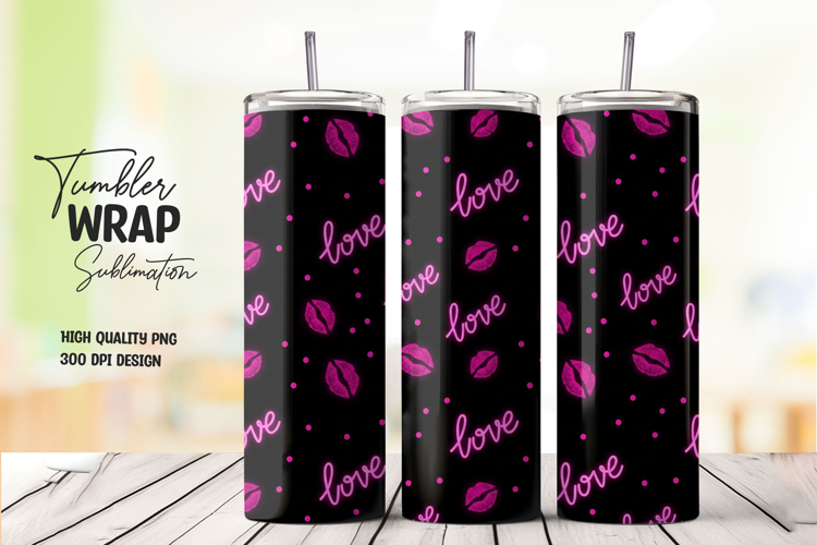 20oz Tumbler Design Romantic Tumbler Love Typography Png Pink Neon Hearts Sublimation Wrap File Neon Kiss Tumbler Wrap Lips Love Design Black Valentine Cup Trendy Valentine Gift Modern Love Art