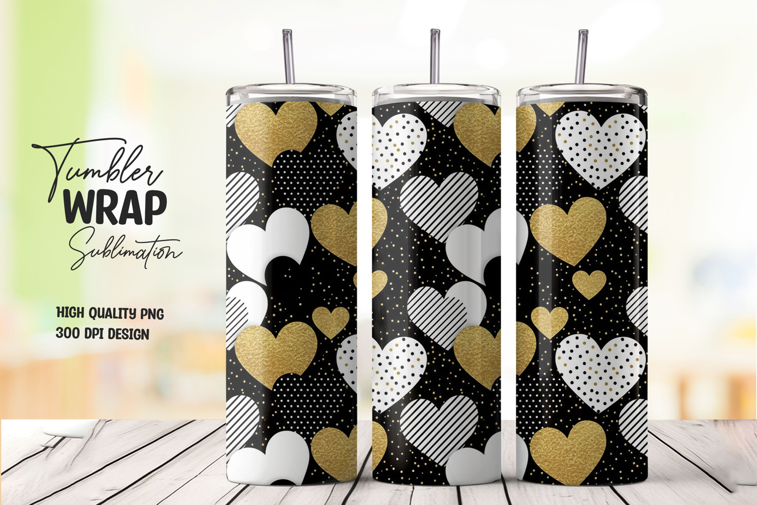 Similar Design Products to Black White Gold Hearts Tumbler Wrap Sublimation PNG