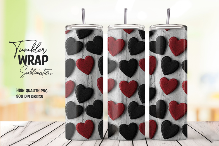 Rustic Wood Heart Tumbler Wrap Red & Black Love Design example image 1