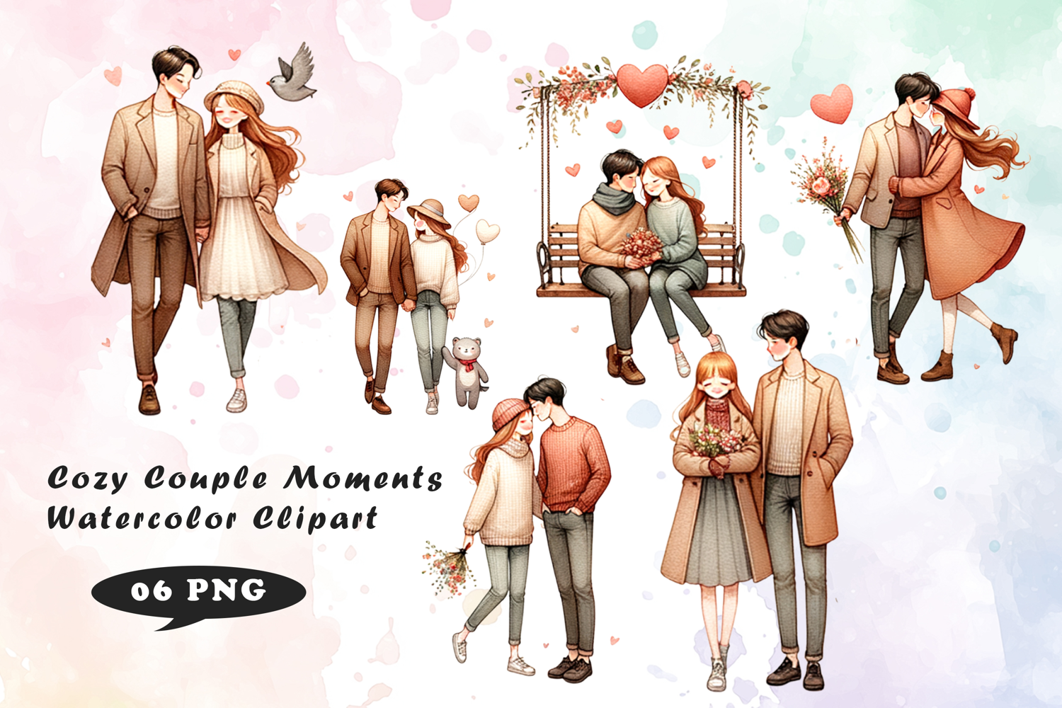 Cozy Couple Moments Watercolor Clipart