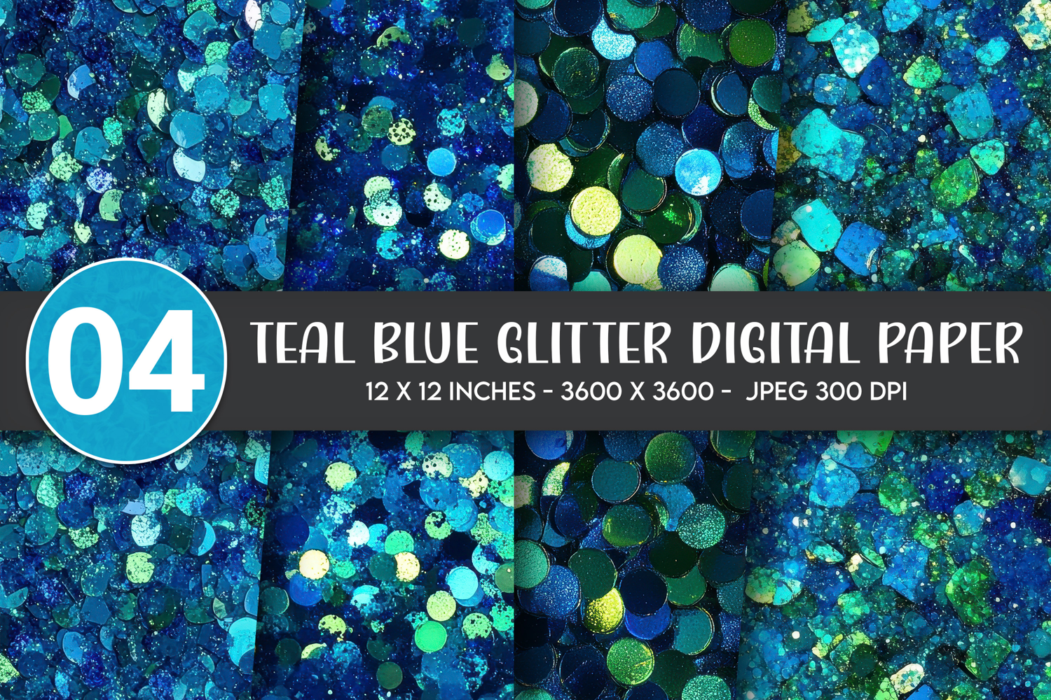 Similar Design Products to Teal Blue Glitter Digital Paper
