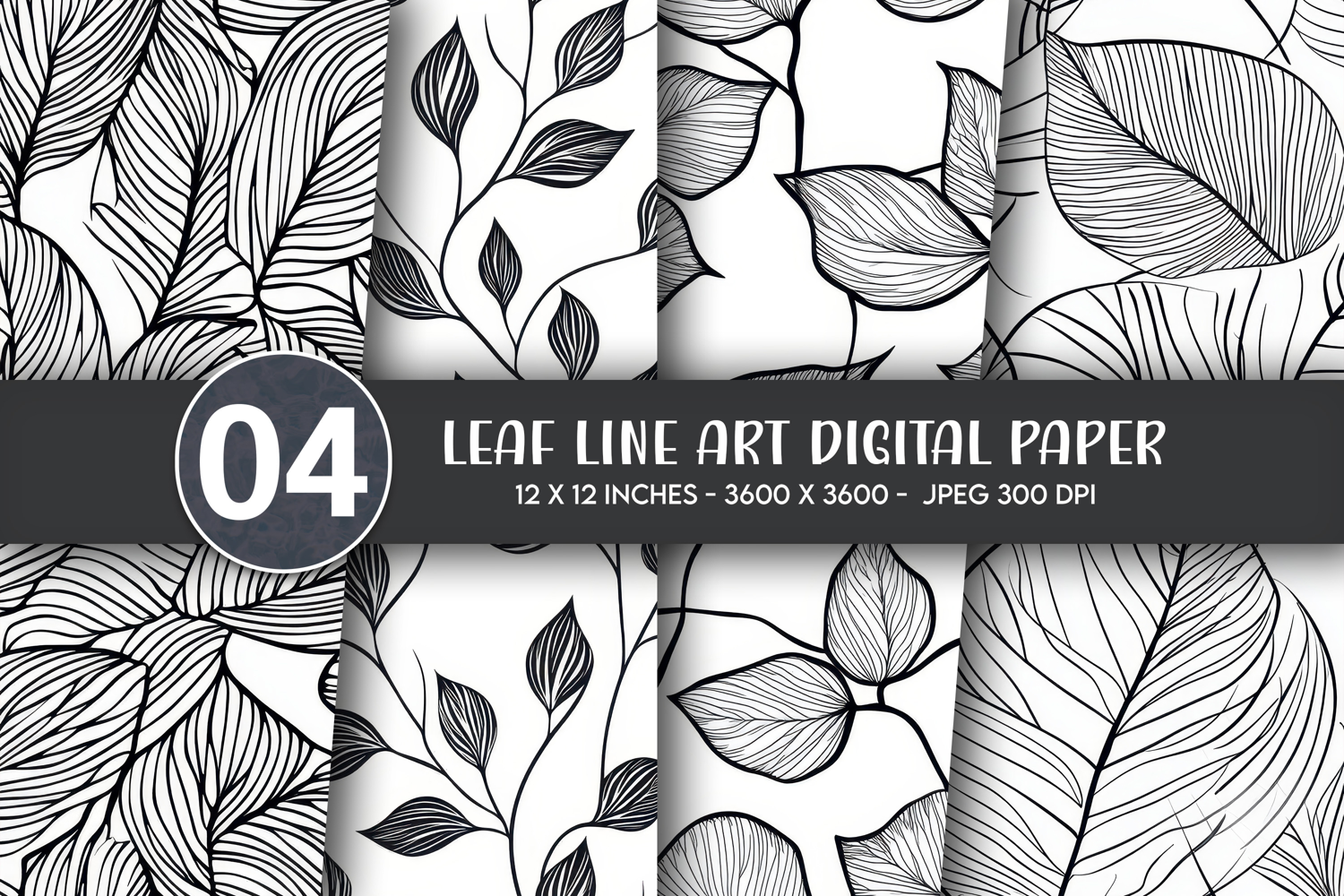 Leaf Line Art Digital Pattern Paper Black White Leaves Nature Inspired Background Botanical Outline Pattern Seamless Line Art Paper Minimal Leaf Design Hand Drawn Botanical Art Elegant Line Illustration Repeating Leaf Texture