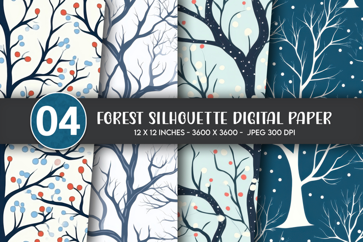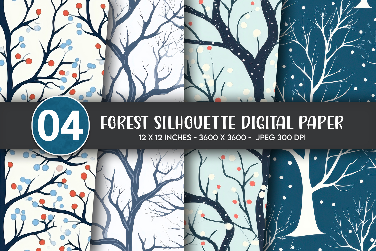 Digital Pattern Paper Botanical Illustration Art Forest Surface Texture Forest Silhouette Pattern Tree Outline Background Seamless Forest Paper Repeating Tree Design Minimal Nature Background Artistic Woodland Pattern Aesthetic Landscape Background