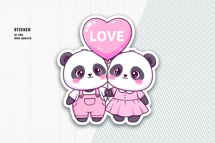 Cute Panda Couple Sticker with Love Balloon example image 1