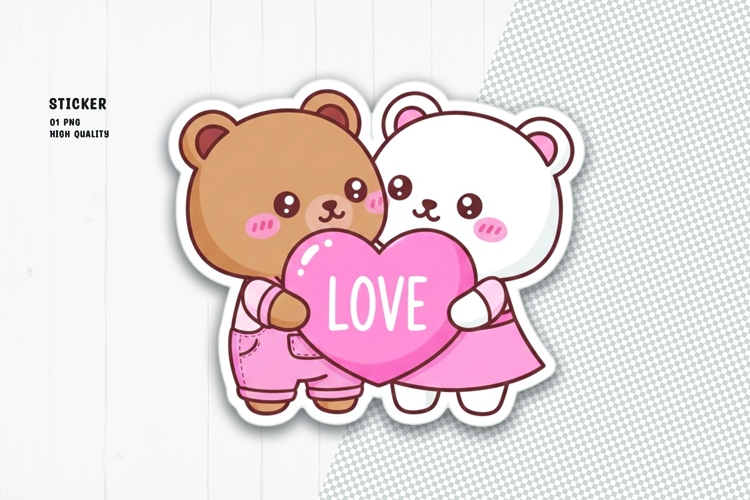 Adorable Bear Couple Holding Heart Love Sticker Clipart PNG example image 1