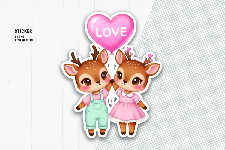 Cute Deer Couple Valentine Love Balloon Sticker Clipart PNG example image 1