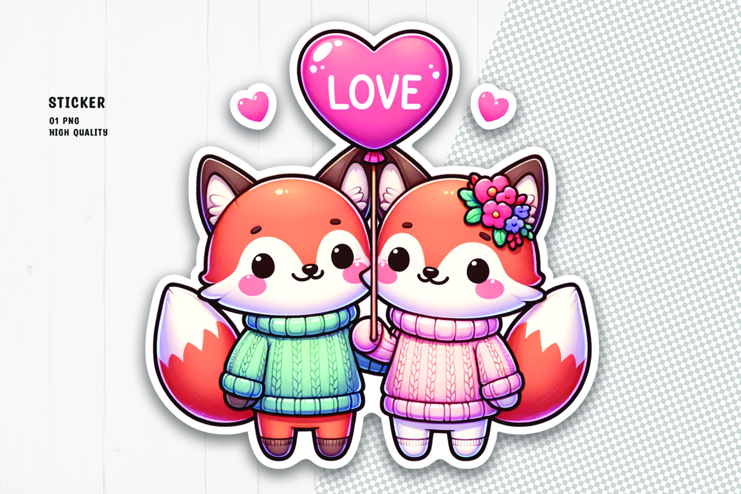 Cute Fox Couple in Sweaters Love Sticker Clipart PNG example image 1