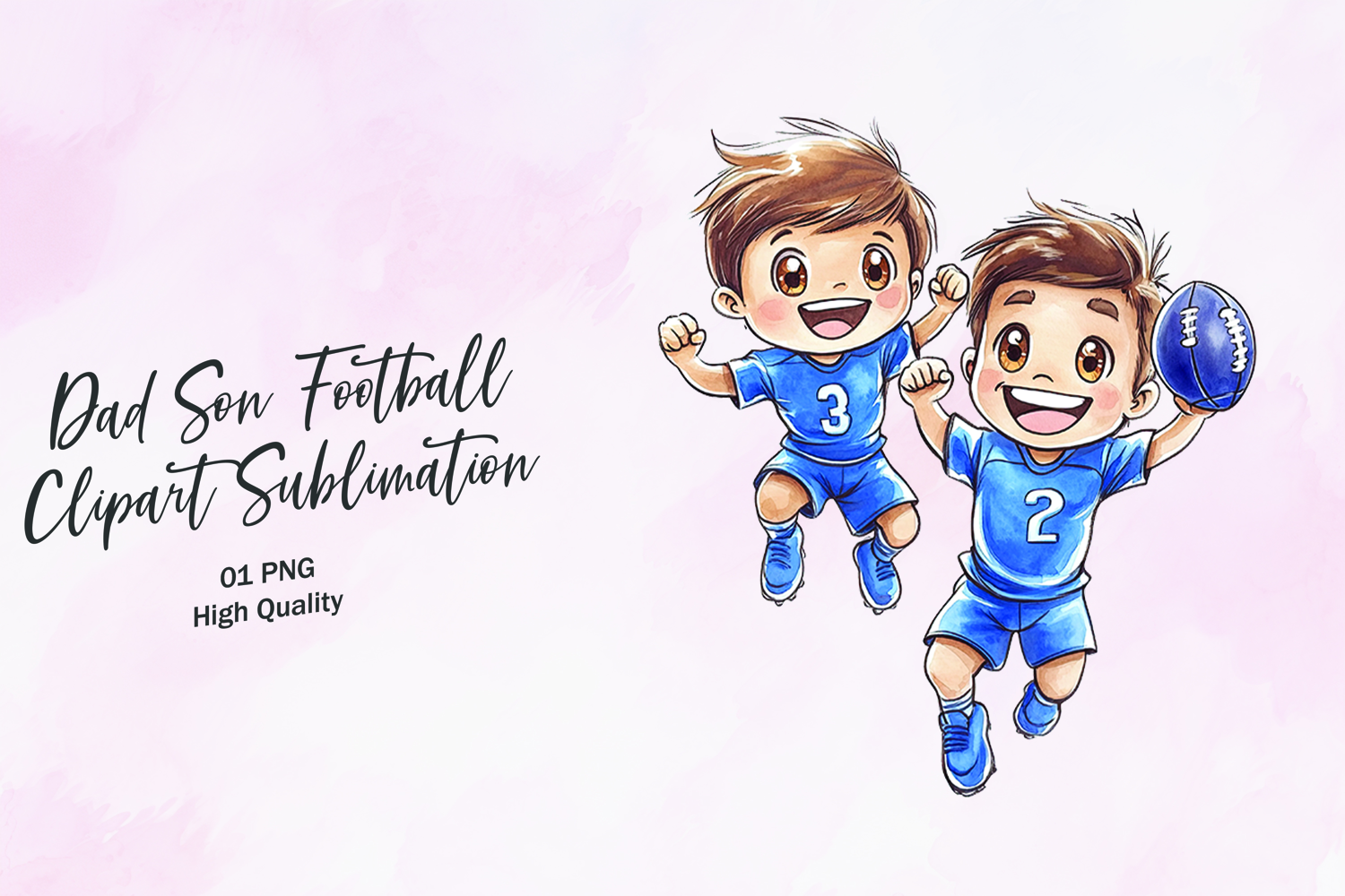 Dad Son Football Happy Clipart Sublimation PNG example image 1