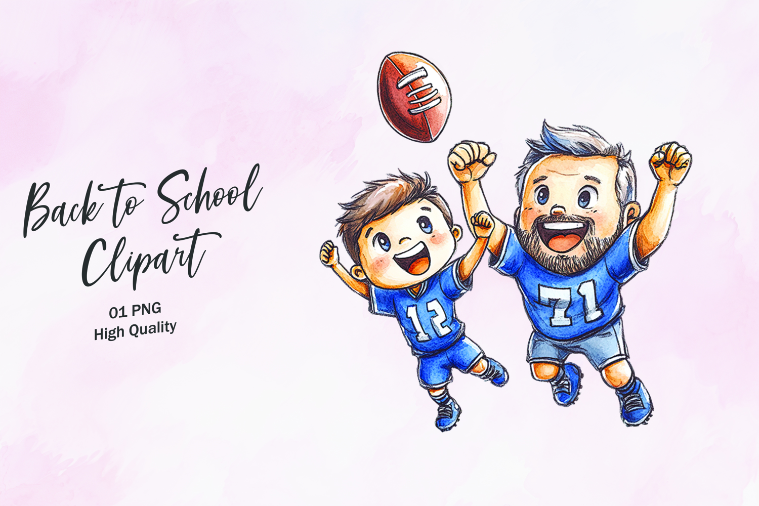 Dad Son Football Catch Clipart Sublimation PNG example image 1