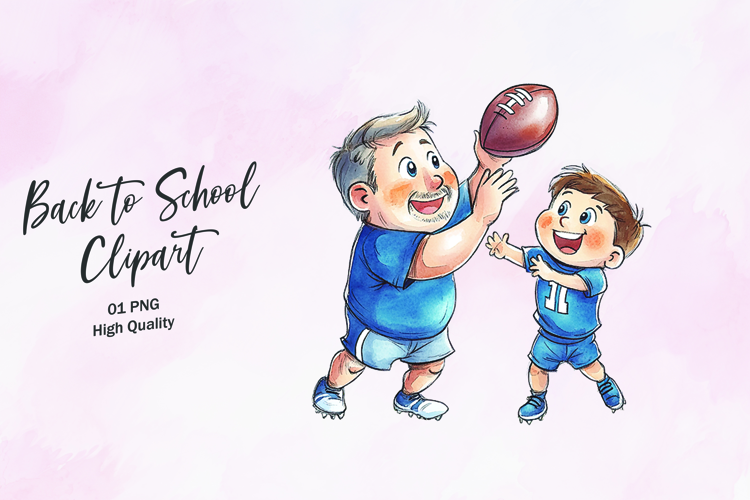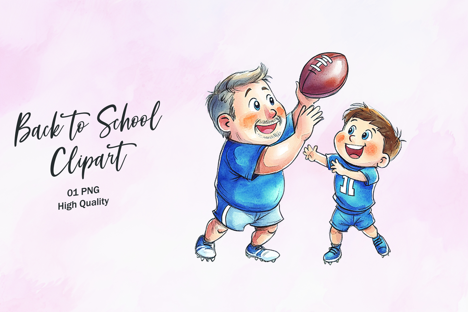Dad Son Football Toss Clipart Sublimation PNG example image 1