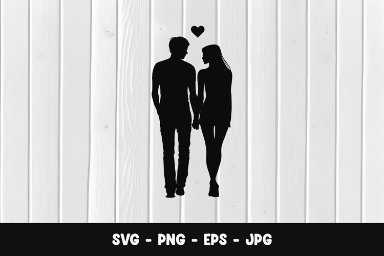 Romantic Walking Couple Silhouette SVG PNG example image 1