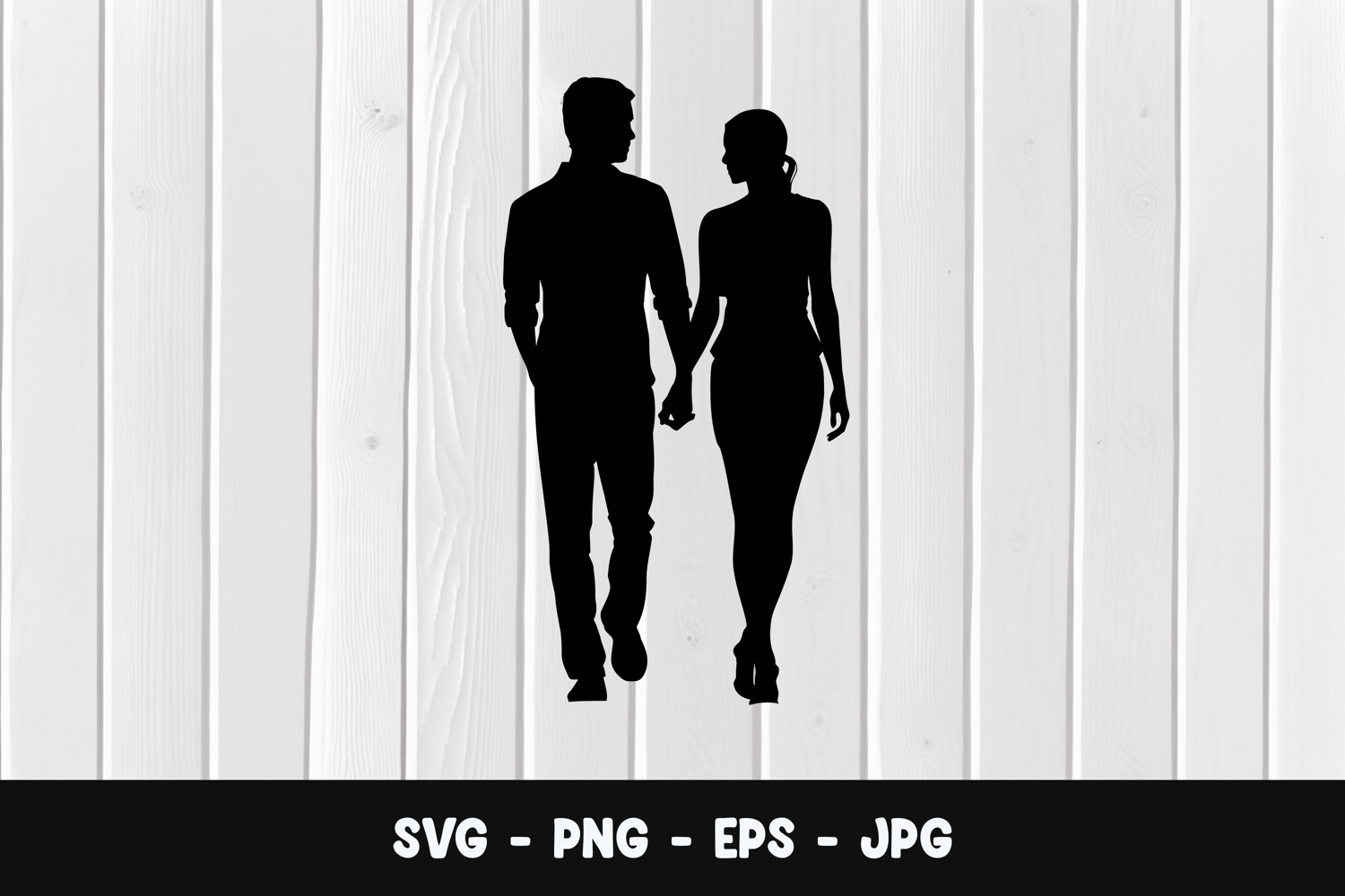 Romantic Couple Holding Hands Back View SVG PNG example image 1