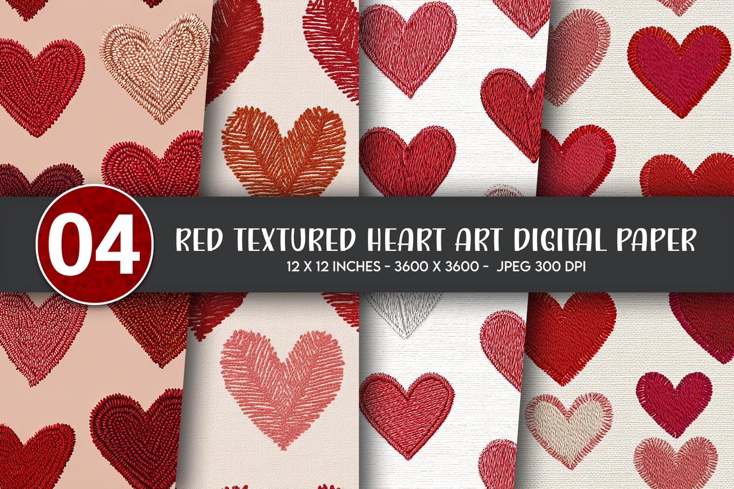 Similar Design Products to Red Textured Heart Art Digital Paper