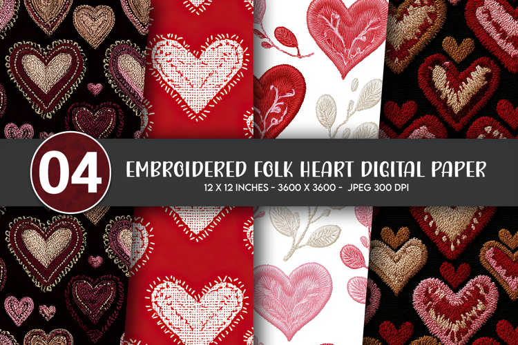 Similar Design Products to Embroidered Folk Heart Digital Paper