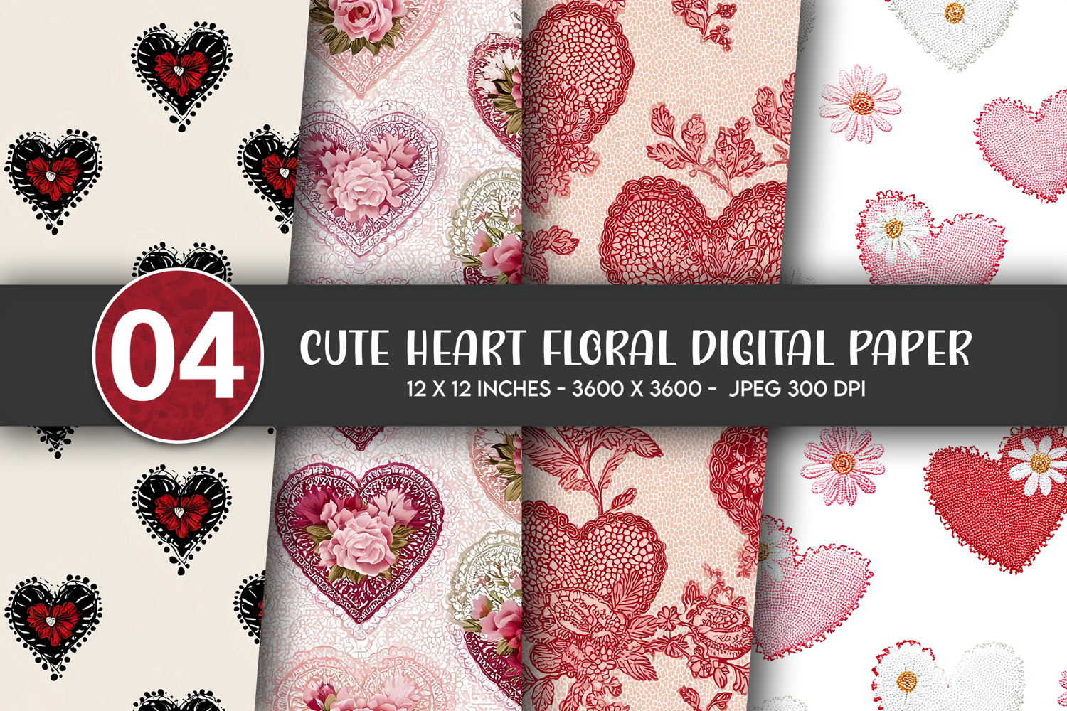 Seamless Heart Paper Floral Heart Design Digital Pattern Paper Playful Heart Motif Floral Surface Texture Cute Heart Background Fabric Inspired Texture Heart Floral Pattern Decorative Flower Hearts Romantic Cute Design
