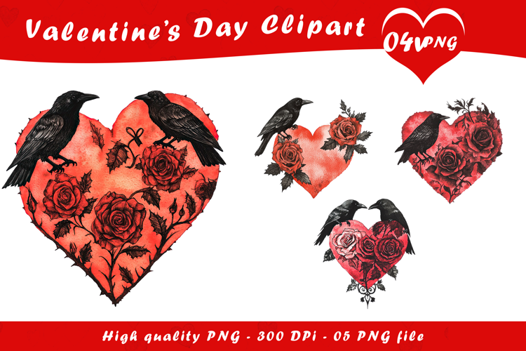Similar Design Products to Valentine Gothic Crow Heart Clipart PNG