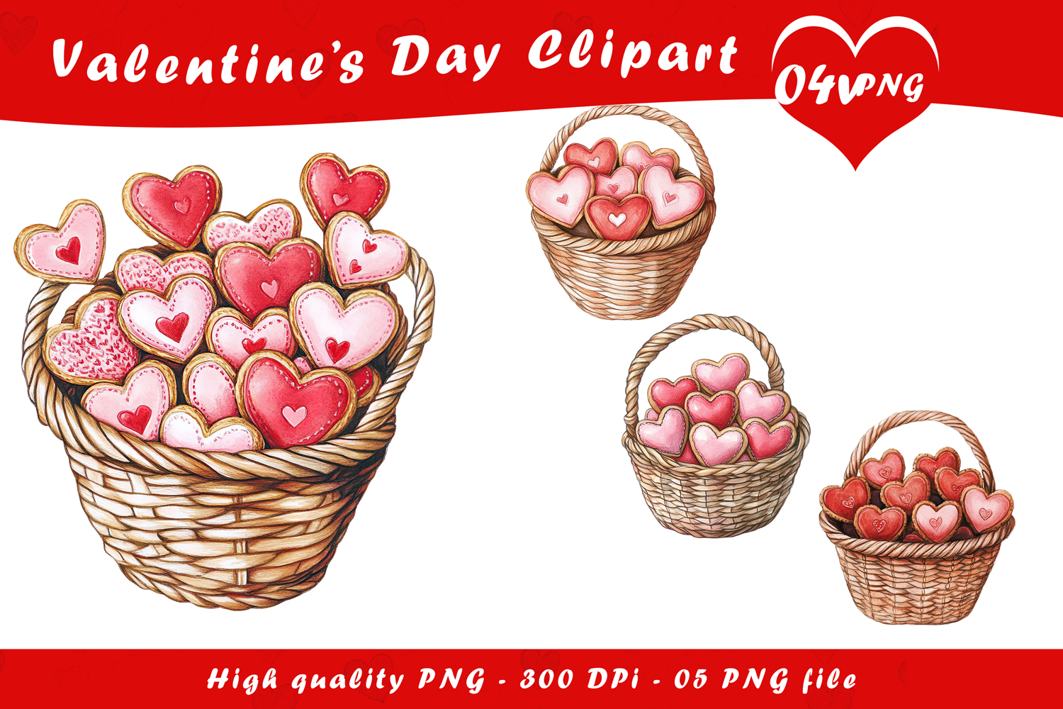 Similar Design Products to Valentine Heart Cookie Basket Clipart PNG