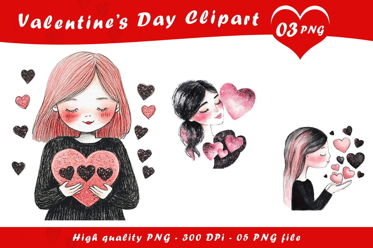 Valentine Cute Girl Love Illustration Clipart PNG example image 1