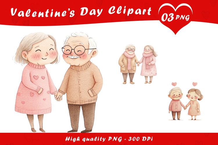 Cute Elderly Couple Love Clipart PNG example image 1