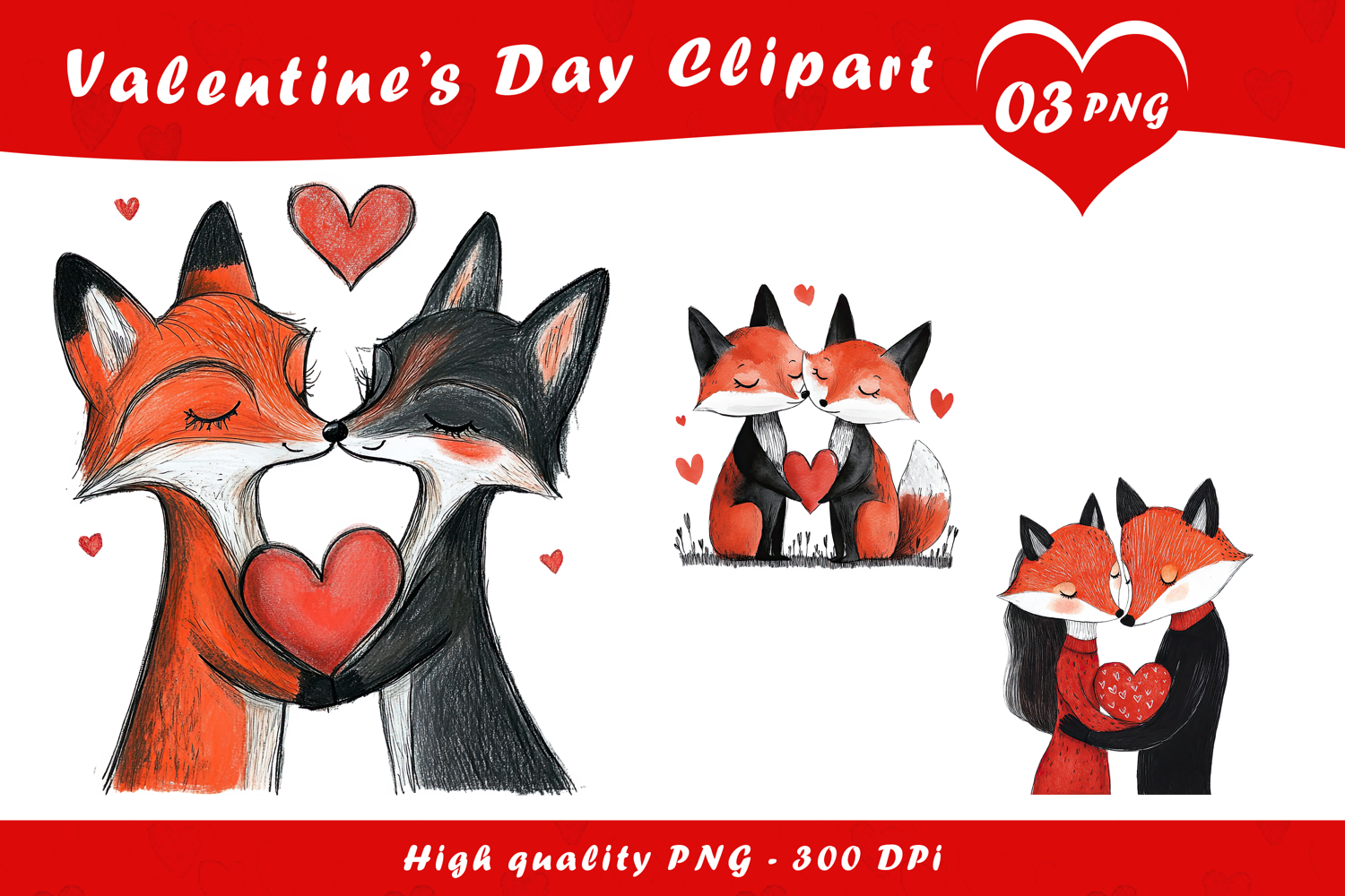 Cute Fox Couple Love Clipart PNG example image 1
