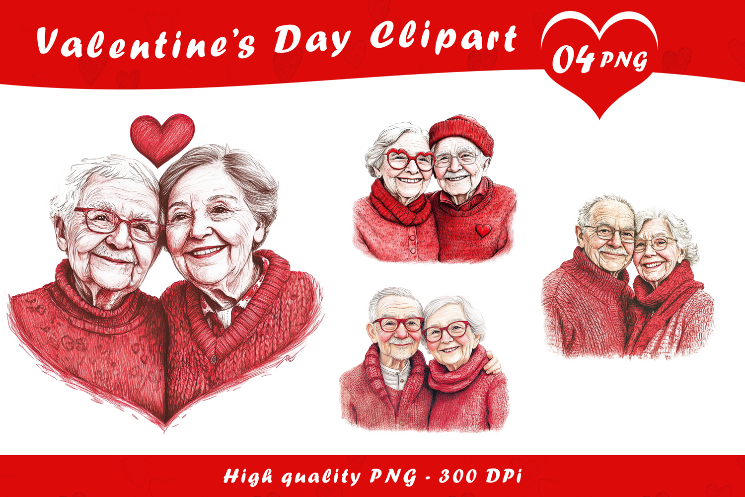 Elderly Couple Love Portrait Clipart PNG example image 1