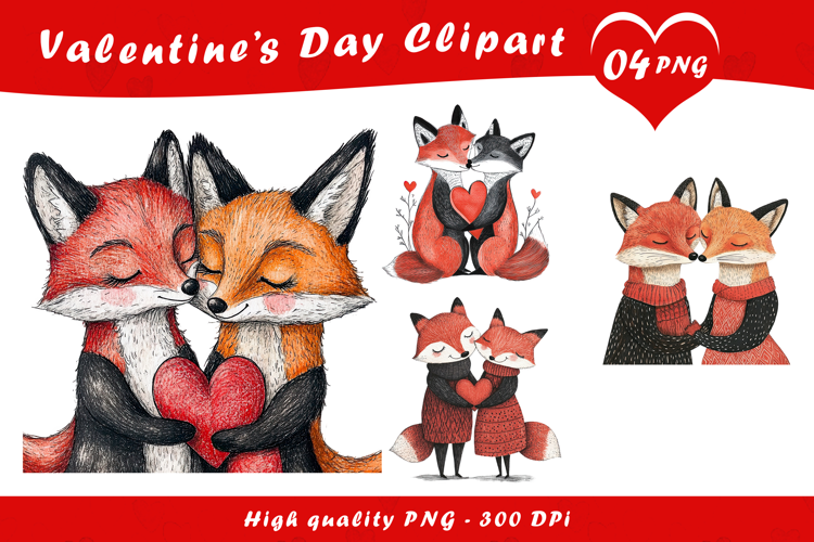 Cute Fox Couple Love Clipart PNG example image 1