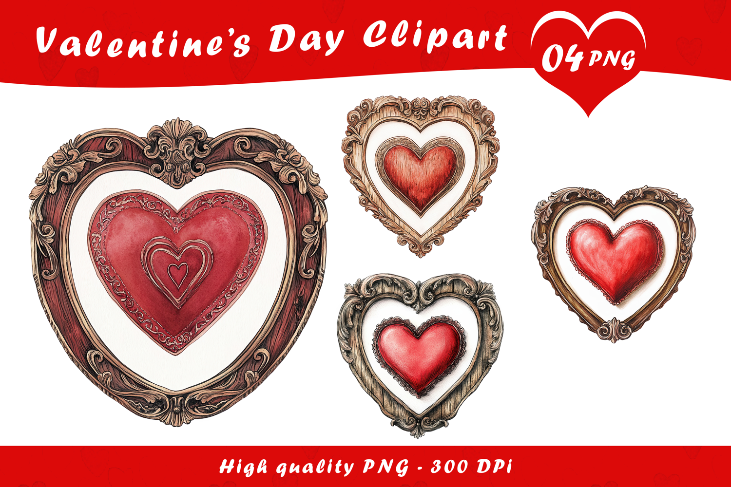 Similar Design Products to Vintage Ornate Heart Frame Valentine Clipart PNG