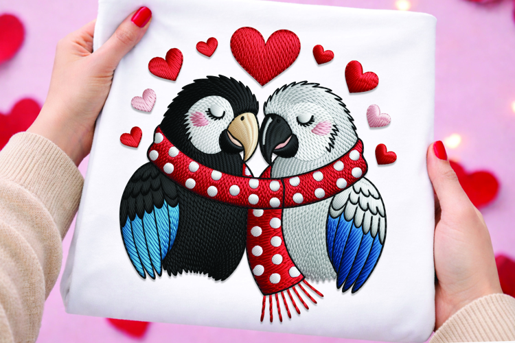 Colorful Parrot Love Couple Scarf Valentine Illustration