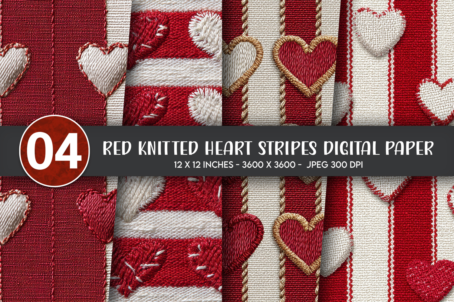 Red Knitted Heart Stripes Digital Paper