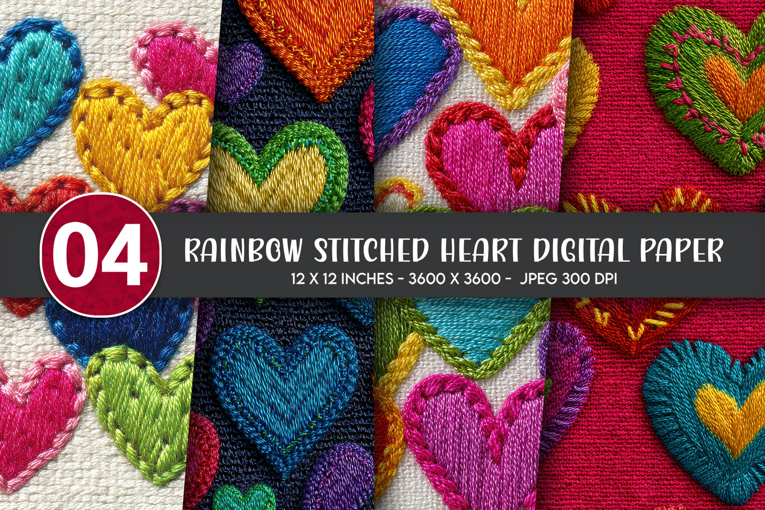 Similar Design Products to Rainbow Stitched Heart Digital Paper