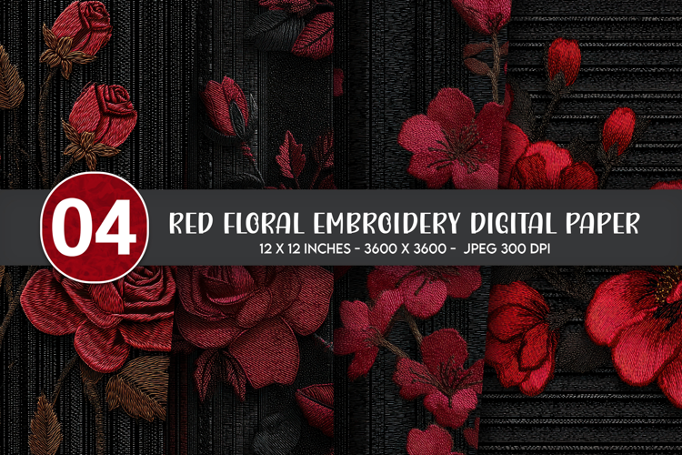 Similar Design Products to Red Floral Embroidery Digital Paper