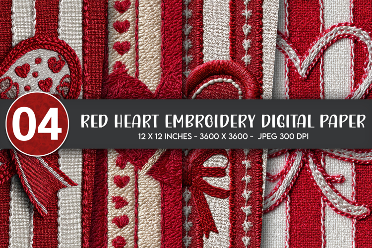 Red Heart Embroidery Digital Paper
