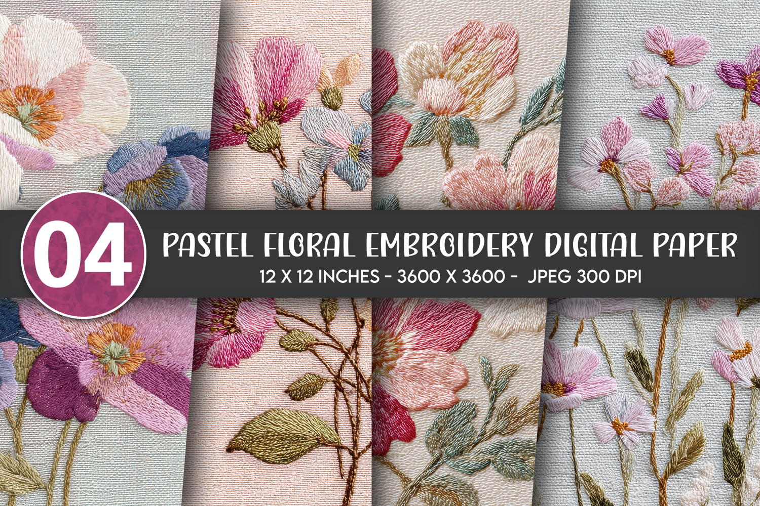 Similar Design Products to Pastel Floral Embroidery Digital Paper